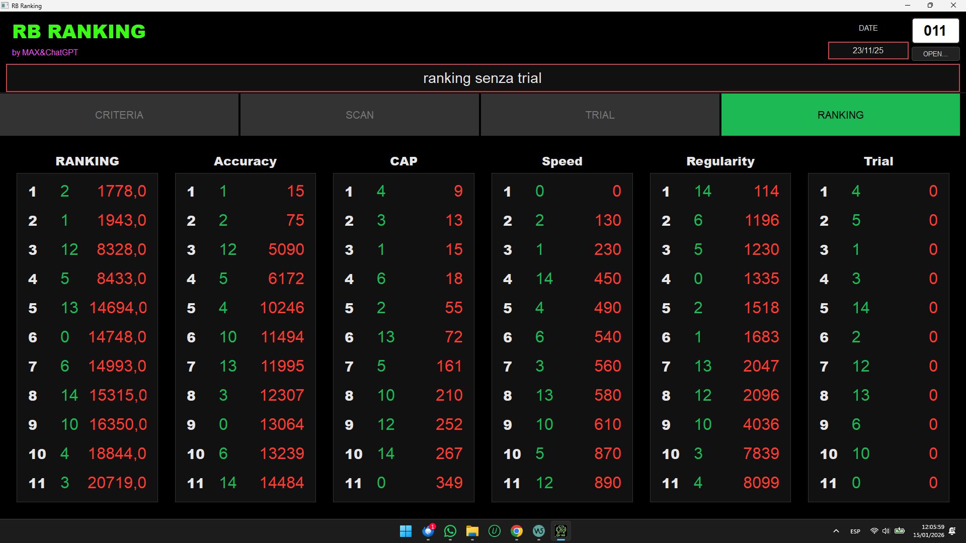 Il programma genera automaitcamente le classifiche