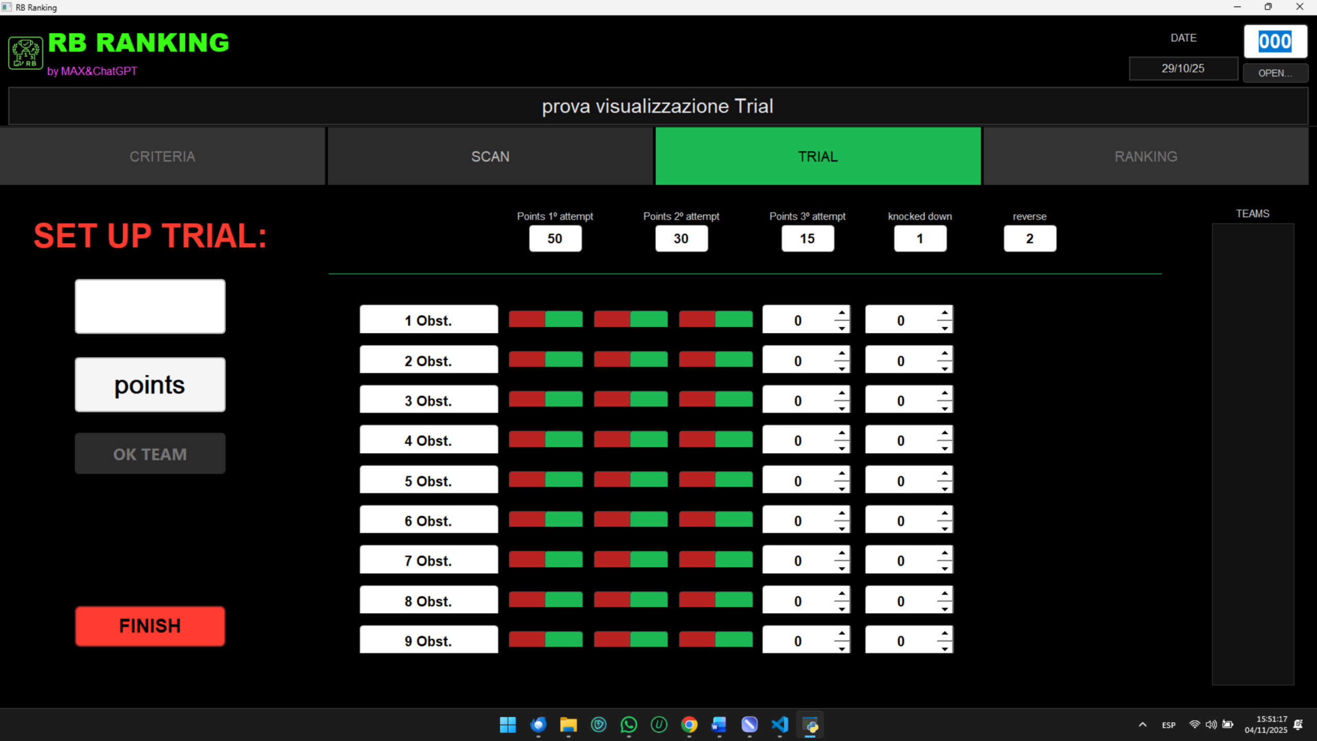 Puoi anche aggiungere prove di trial e inserire i punteggi degli equipaggi